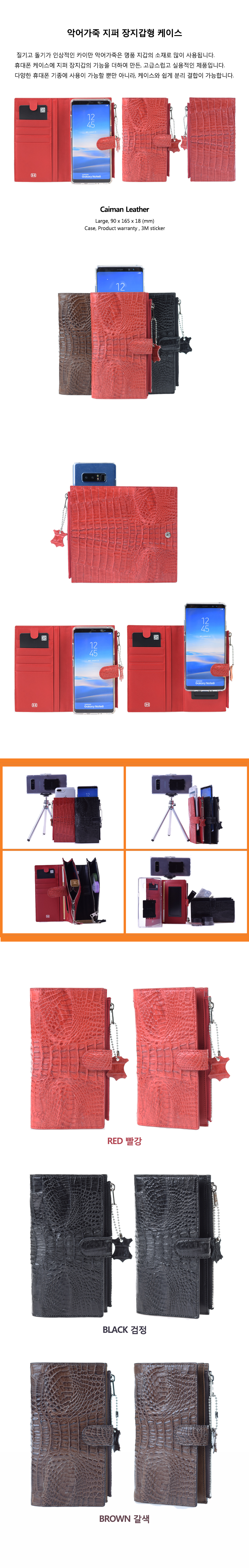카이만 악어 가죽 지퍼 장지갑형 휴대폰 케이스
